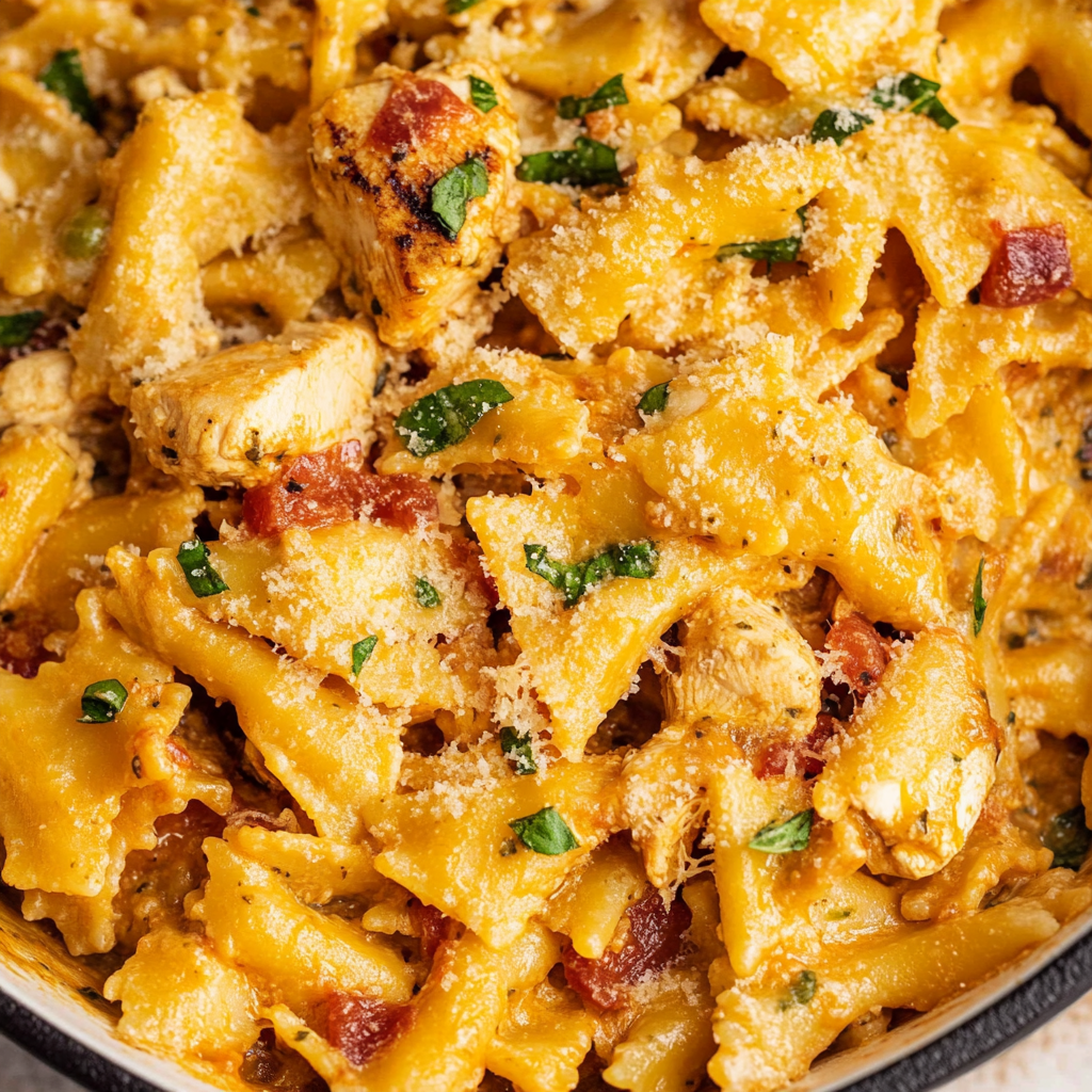- Return chicken to the skillet and mix well with sauce. Add cooked pasta and toss gently to coat.