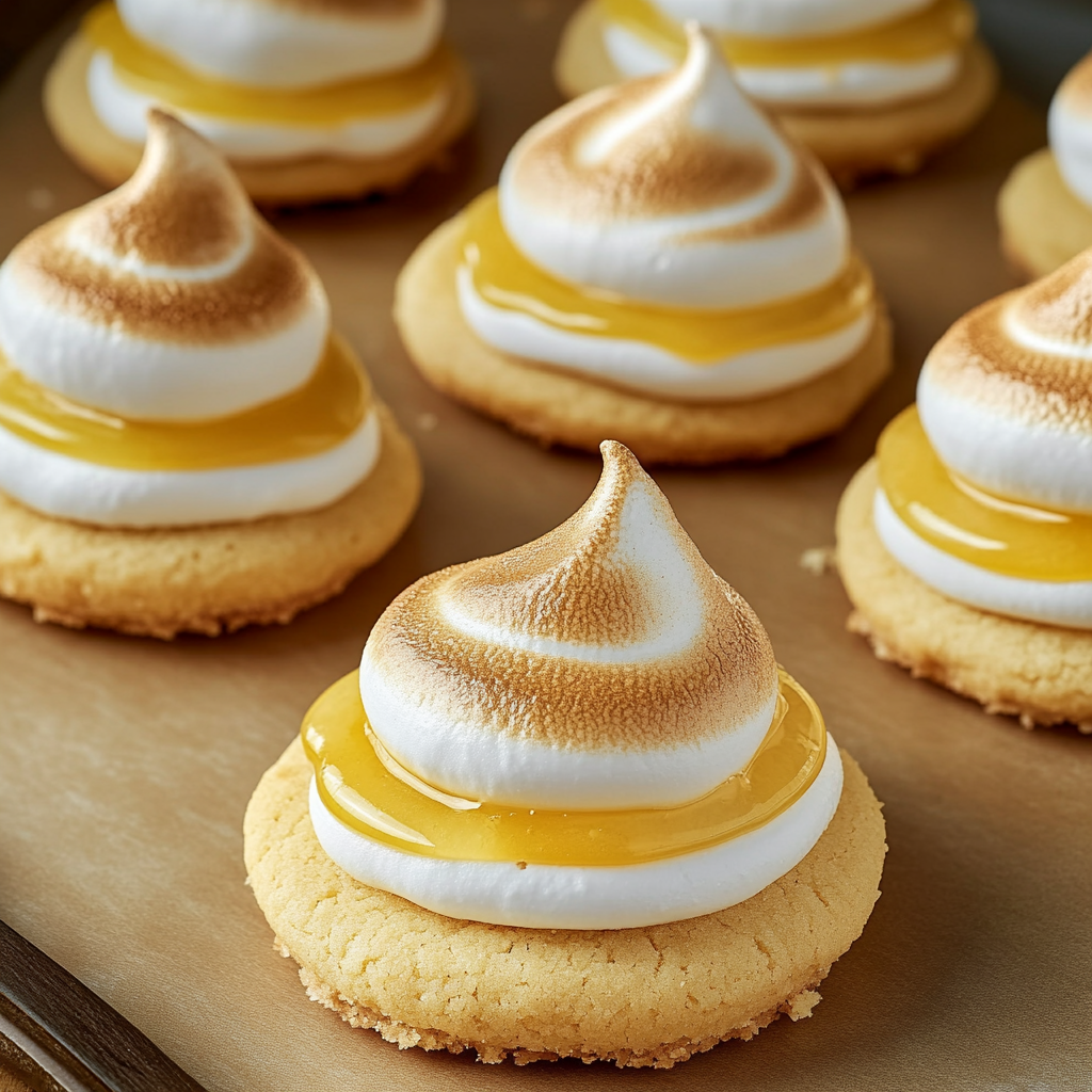 5. Spoon lemon filling onto each cooled cookie and top with meringue. Broil for 1-2 minutes until golden brown. Let cool completely before serving.