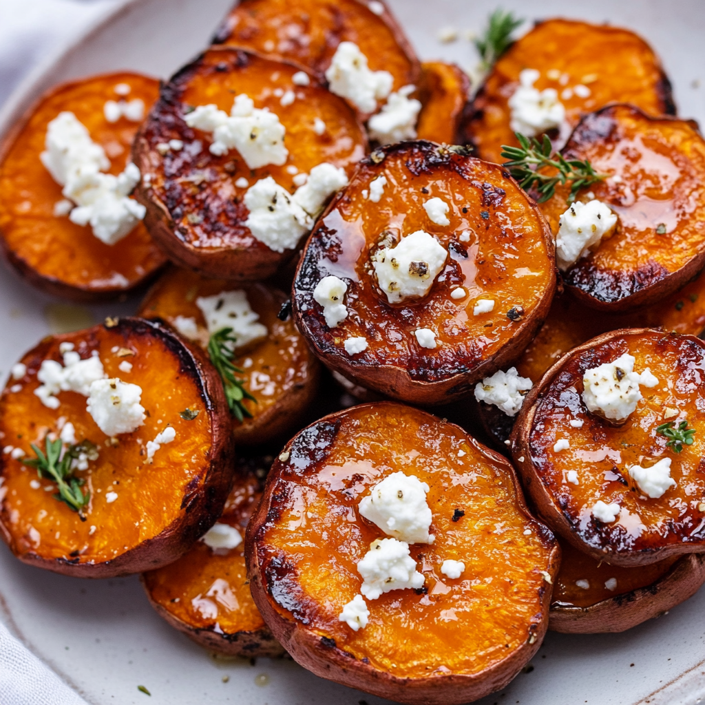 How to Serve Roasted Sweet Potato Rounds with Honey & Feta
