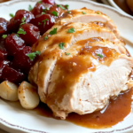 Now you’re ready to serve up slices of juicy turkey breast drizzled with that rich cranberry gravy—perfect alongside mashed potatoes or roasted veggies! Enjoy every bite!